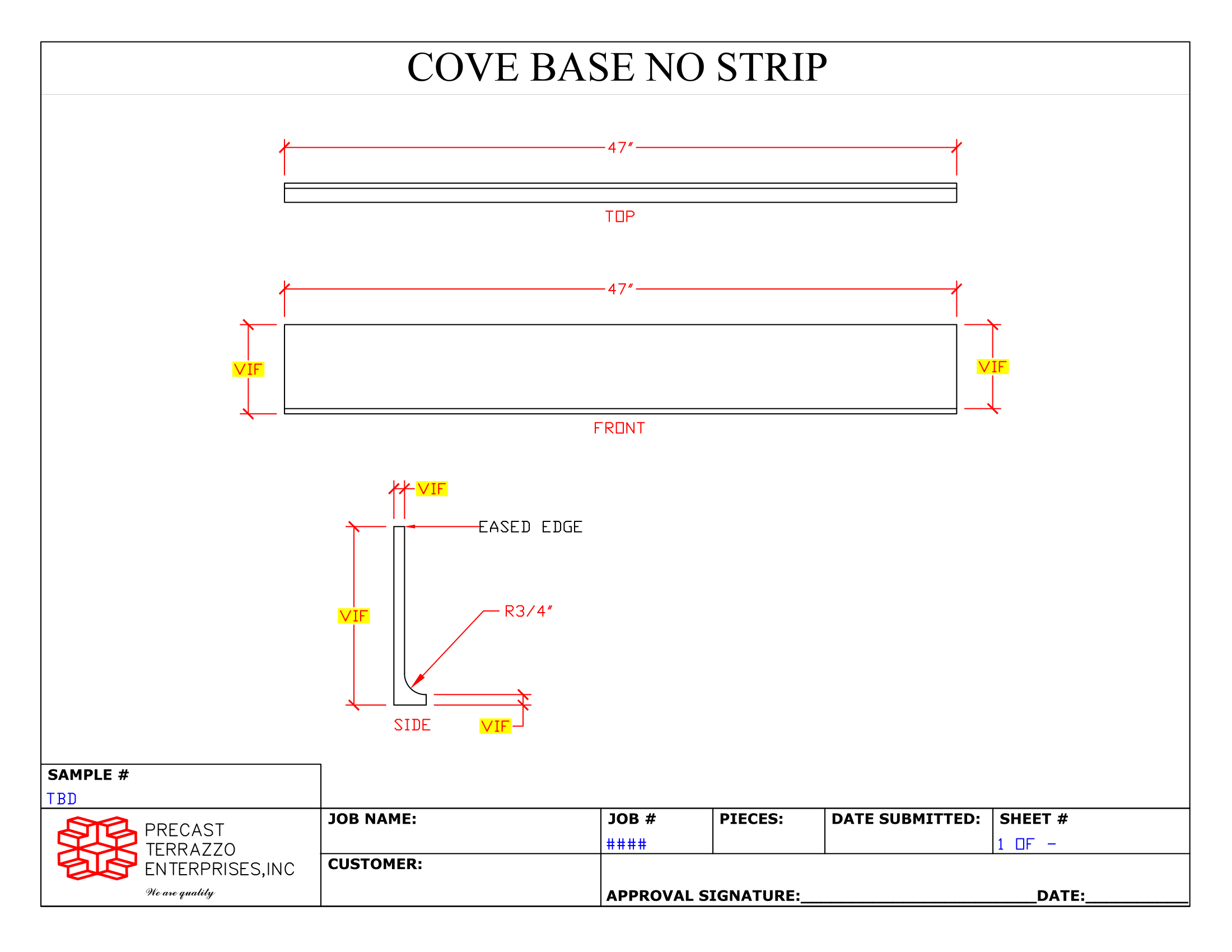 PTE can manufacture virtually any design that can be shown on shop tickets, but most work is done in a variation of some standard designs. To assist our customers, we have prepared a series of Standard Shop Drawing Templates. We urge you to print these out as needed and use them to provide us with estimated measurements where final measurements are not yet available to obtain a good price proposal. They can then be used again for “VIF” (Verified in the Field) dimensions for PTE to create final shop drawings for your approval.